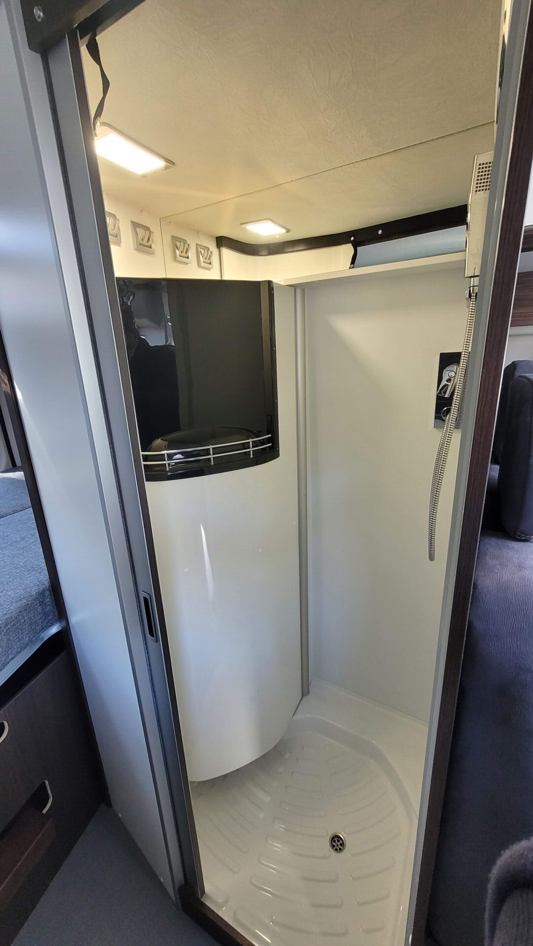 - 2-Flammen-Gasherd, Kühlschrank mit Eisfach beidseitig zu öffnen, Spüle in Küche und Bad, Clesana (wasser- und chemiefreie) Verschweißtoilette und Dusche