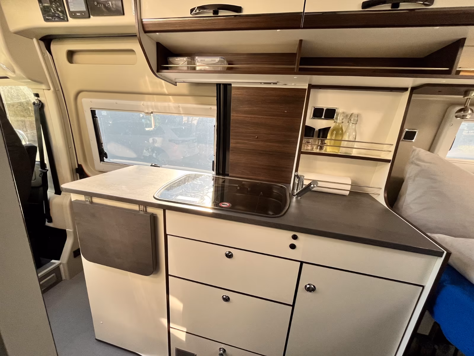 Ein luxuriös ausgestatteter Pössl Globecar Summit Prime 600 auf Basis Fiat Ducato bietet erstaunlich viel Platz für einen Kastenwagen und genügend Stauraum für einen unvergesslichen Urlaub zu zweit.
